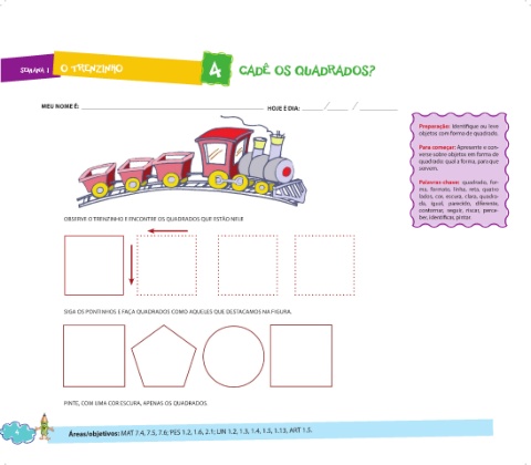 OBSERVE O TRENZINHO E ENCONTRE OS QUADRADOS QUE ESTÃO NELE ber, identi car, pintar.