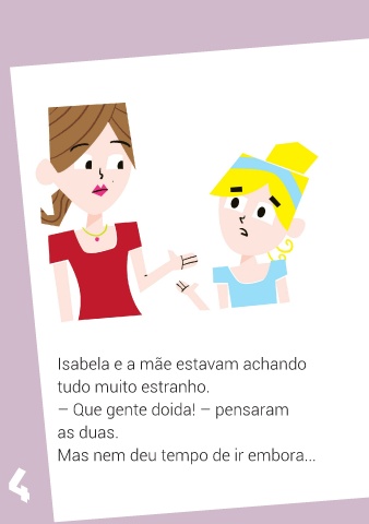 Isabela e a mãe estavam achando tudo muito estranho. – Que gente doida! – pensaram as duas. Mas nem deu tempo de ir embora... 4